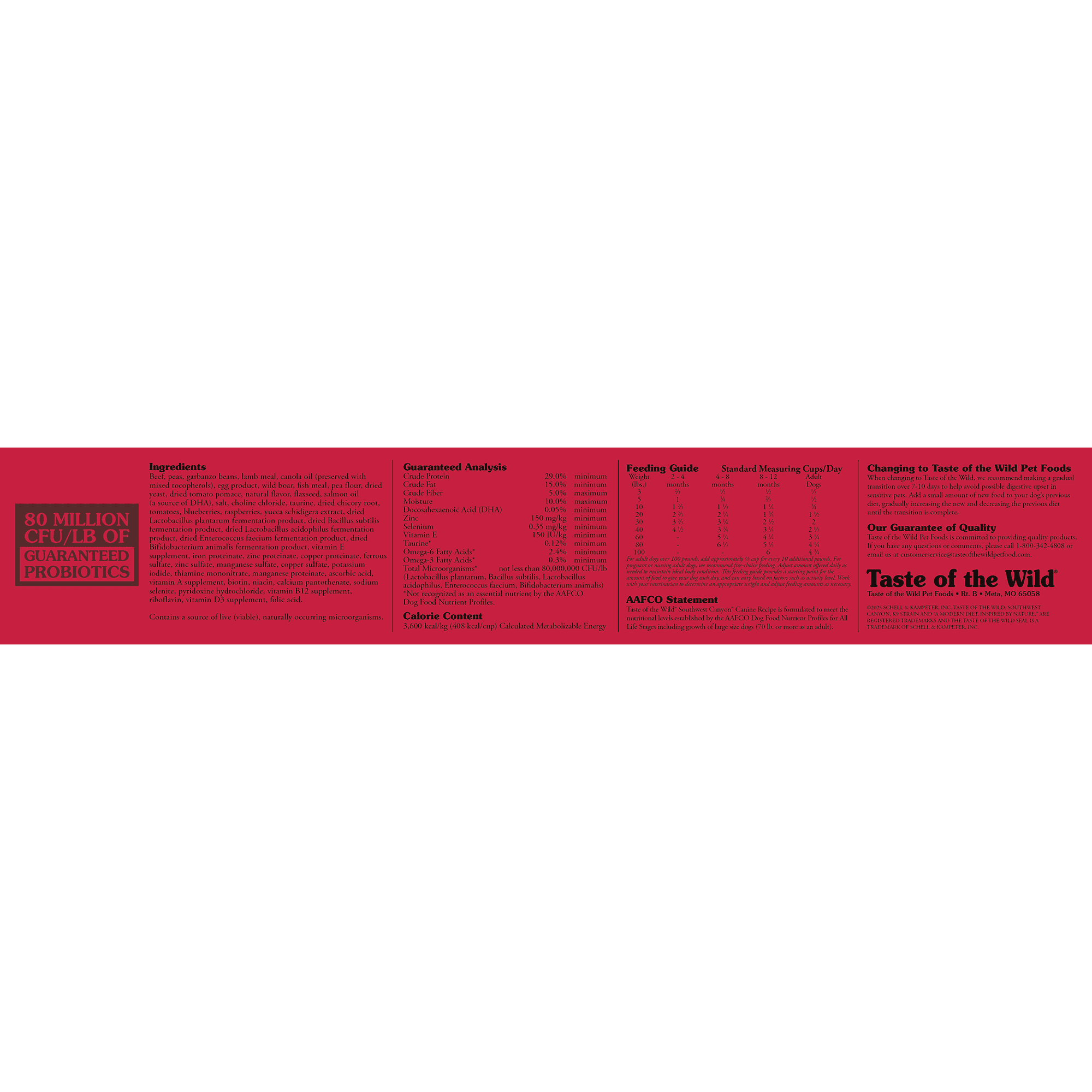 غذای Southwest Canyon یکی از خاصترین محصولات Taste of the Wild است که تمرکز اصلی آن روی پروتئین حیوانی خالص و قابلهضم قرار دارد.