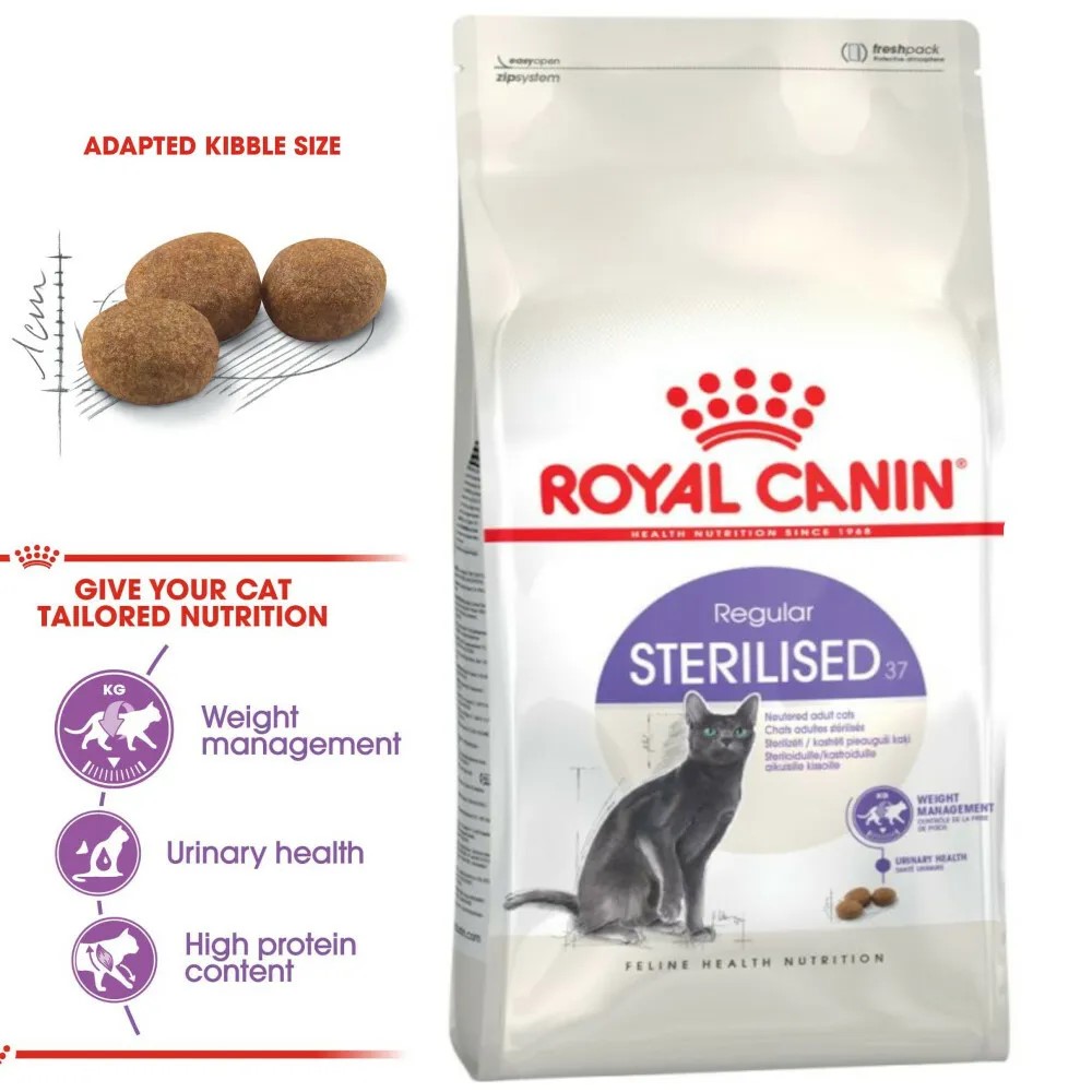 غذای خشک Royal Canin Sterilised مخصوص گربههای عقیمشده طراحی شده است تا به کنترل وزن، حفظ سلامت ادراری و تأمین مواد مغذی متعادل کمک کند. بعد از عقیمسازی، متابولیسم بدن گربه تغییر کرده و تمایل به افزایش وزن بیشتر میشود؛ این فرمول دقیق به حفظ وزن ایدهآل و سلامت عمومی بدن کمک میکند.
