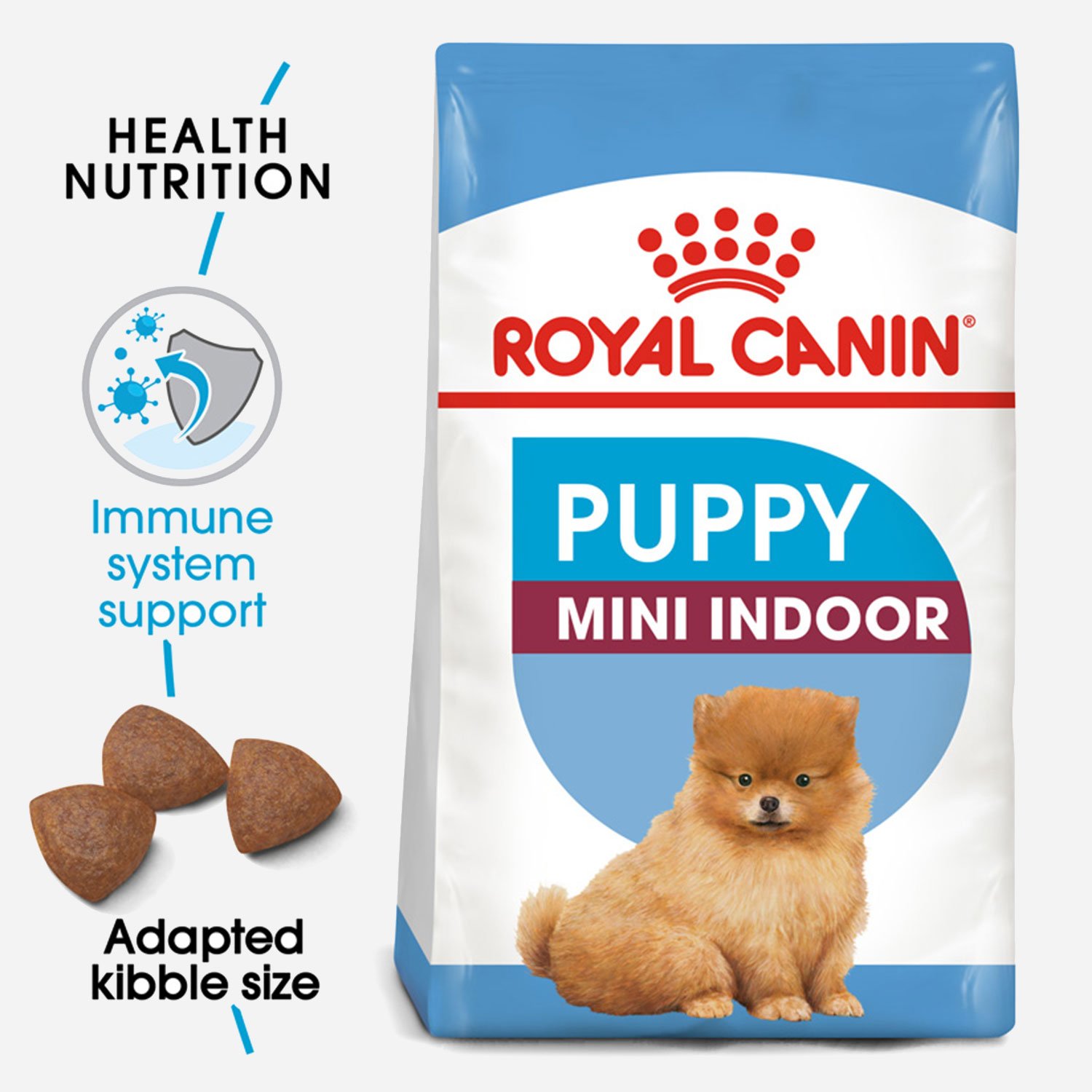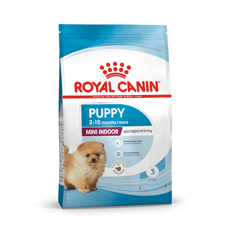 غذای خشک Royal Canin Mini Indoor Puppy مخصوص تولهسگهای نژاد کوچک (وزن بالغ تا حدود 10 کیلوگرم) که عمدتاً در محیط داخلی خانه زندگی میکنند و سن آنها بین 2 تا 10 ماه است. این فرمول با پروتئینهای بسیار قابل هضم، فیبر متعادل، منابع کربوهیدرات با کیفیت و اسیدهای چرب امگا-۳ (EPA & DHA) تولید شده تا سیستم گوارش، سیستم ایمنی و سلامت پوست و پوشش بدن تولهسگ را بهینه کند. همچنین طراحی خاص مقداری انرژی کنترلشده برای سبکزندگی داخل خانه دارد و به کاهش بوی مدفوع کمک میکند.
